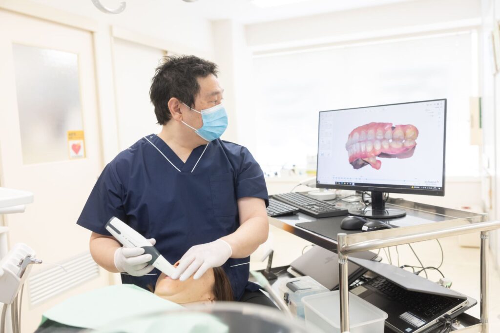マウスピース作成の型取りは口腔内スキャナーにて行い、シミュレーションを行ったうえで患者様に説明を行いスタートします。